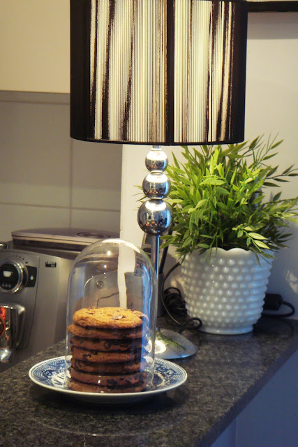 I found this top to a clock whilst thrifting recently for $2, the sales person asked what I would do with it - I was not quite sure at the time. Once I got it home I decided to pair it with a blue and white plate (thanks mum) and a stack crumb of choc chip cookies..